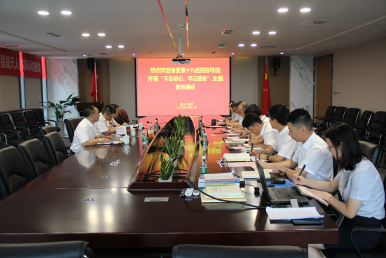 2019年7月19日上午,,,,,,省委第十九巡回指导组副组长、省政协常委、社会法制委主任、省审查院原副审查长朱晚林一行莅临公司考察调研,,,,,,对“不忘初心、切记使命”主题教育举行专题指导。。。。。。公司党支部书记、董事长、总司理李树成及主题教育向导小组相关成员加入座谈交流。。。。。。