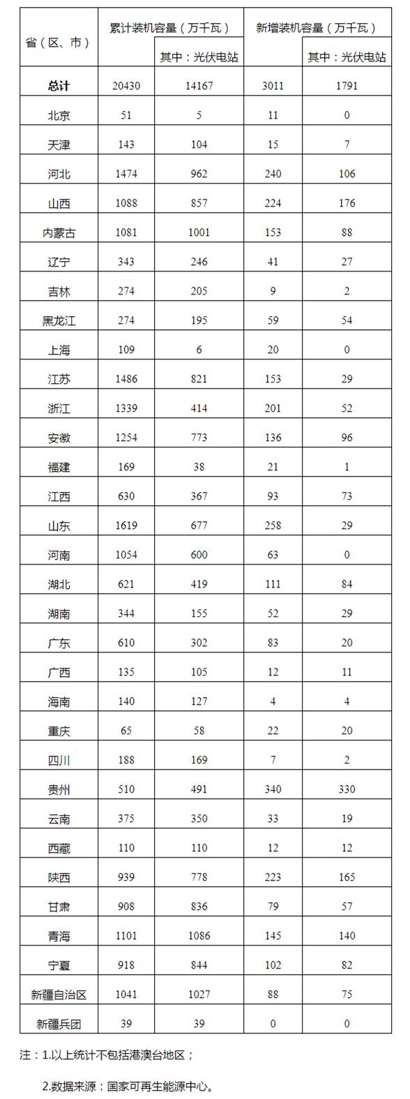 重新增装机结构看,,,,,华北地区新增装机858万千瓦,,,,,同比下降24.0%,,,,,占天下的28.5%;;;;;;;东北地区新增装机153万千瓦,,,,,同比下降60.3%,,,,,占天下的5.1%;;;;;;;华东地区新增装机531万千瓦,,,,,同比下降50.1%,,,,,占天下的17.5%;;;;;;;华中地区新增装机348万千瓦,,,,,同比下降47.6%,,,,,占天下的11.6%;;;;;;;西北地区新增装机649万千瓦,,,,,同比下降1.7%,,,,,占天下的21.6%;;;;;;;华南地区新增装机472万千瓦,,,,,同比下降5.1%,,,,,占天下的15.7%。。。。。2019年天下光伏发电量达2243亿千瓦时,,,,,同比增添26.3%,,,,,光伏使用小时数1169小时,,,,,同比增添54小时。。。。。天下弃光率降至2%,,,,,同比下降1个百分点,,,,,弃光电量46亿千瓦时。。。。。从重点区域看,,,,,光伏消纳问题主要泛起在西北地区,,,,,其弃光电量占天下的87%,,,,,弃光率同比下降2.3个百分点至5.9%。。。。。华北、东北、华南地区弃光率划分为0.8%、0.4%、0.2%,,,,,华东、华中无弃光。。。。。从重点省份看,,,,,西藏、新疆、甘肃弃光率划分为24.1%、7.4%、4.0%,,,,,同比下降19.5、8.2和5.6个百分点;;;;;;;青海受新能源装机大幅增添、负荷下降等因素影响,,,,,弃光率提高至7.2%,,,,,同比提高2.5个百分点。。。。。