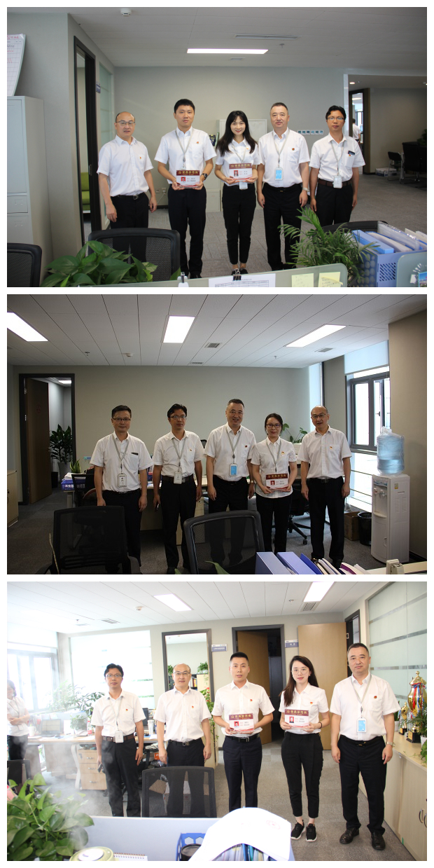 经由小我私家自荐、党小组推荐和支委会评议等形式层层选拔,,,,,,最终师贤华、吴联超、周文宇、郑洁、夏国宁、曾丹六名同志脱颖而出,,,,,,党支部决议授予“党员树模岗”。。。。。。。。2019年9月2日上午,,,,,,公司党支部书记、董事长、总司理李树成,,,,,,党支部委员、副总司理张新,,,,,,党支部委员、财务总监陈发刚亲临党员的事情岗位上,,,,,,郑重揭晓“党员树模岗”标牌。。。。。。。。